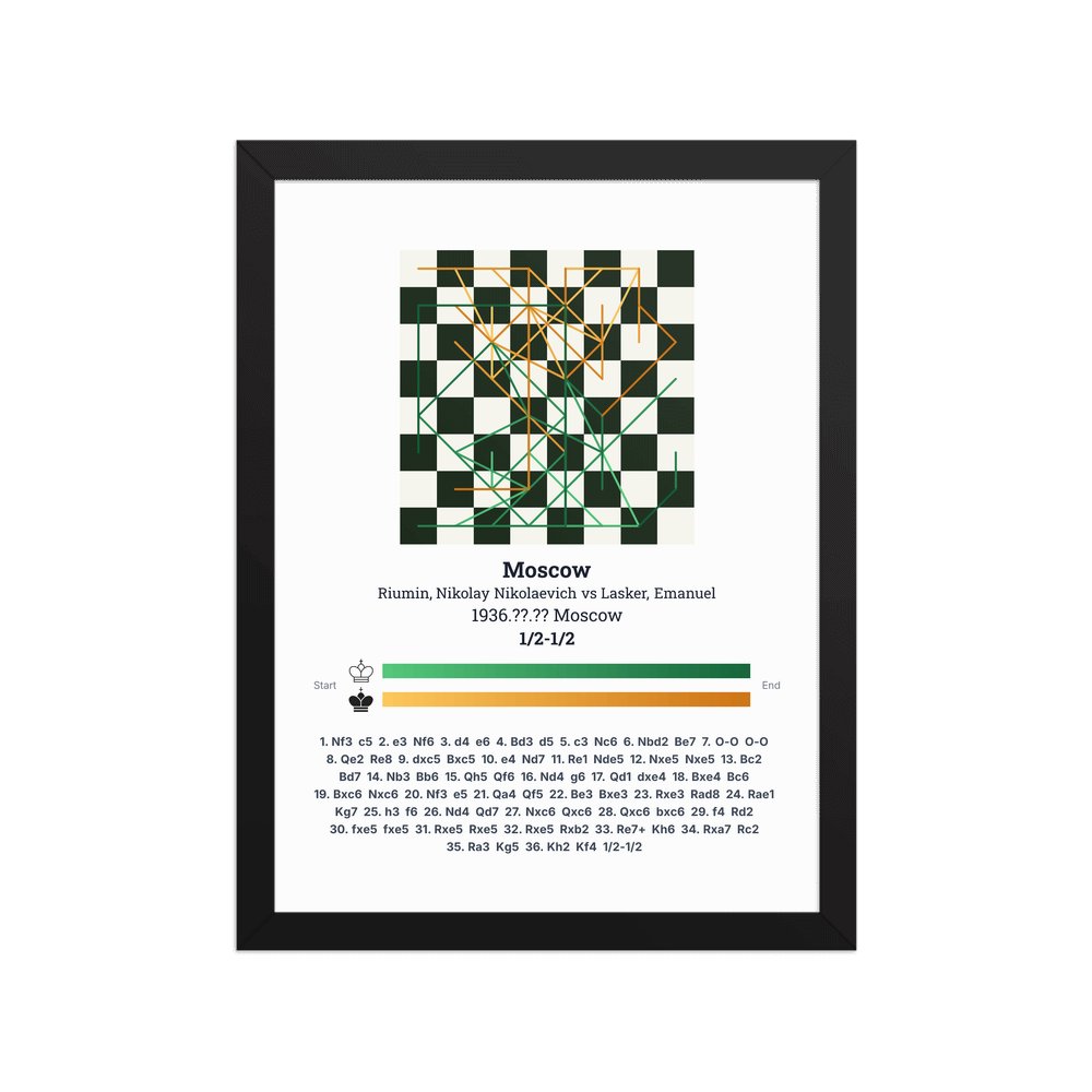 Museum-quality poster on thick, durable matte paper. A sharp, clean look for any chess visualisation.