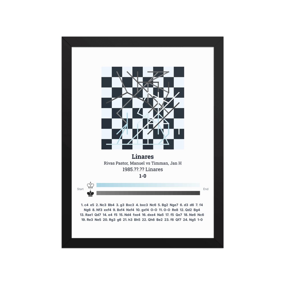 Museum-quality poster on thick, durable matte paper. A sharp, clean look for any chess visualisation.
