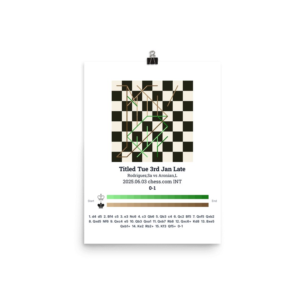 Museum-quality poster on thick, durable matte paper. A sharp, clean look for any chess visualisation.