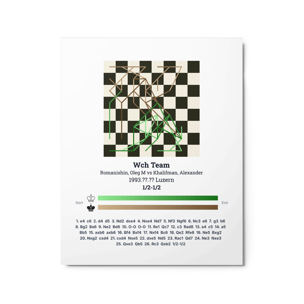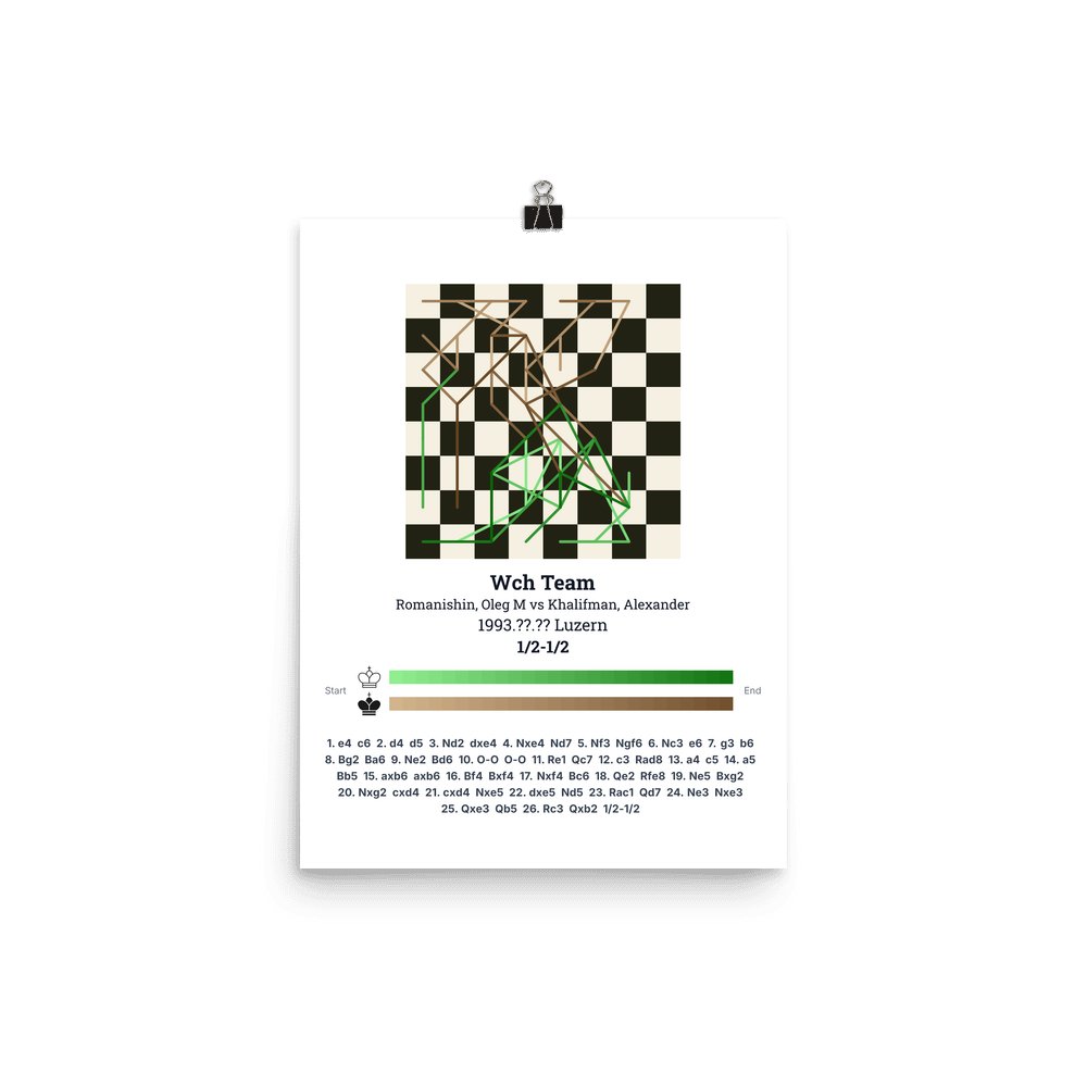 Museum-quality poster on thick, durable matte paper. A sharp, clean look for any chess visualisation.