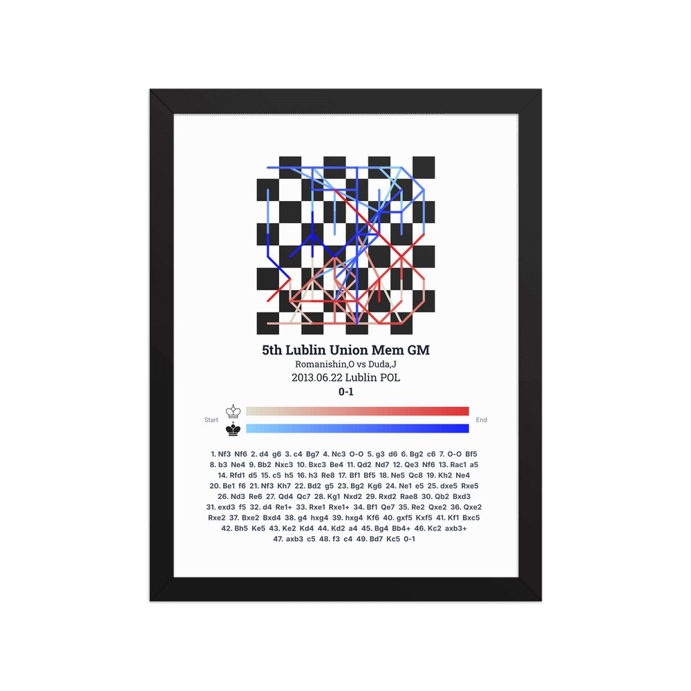 Museum-quality poster on thick, durable matte paper. A sharp, clean look for any chess visualisation.