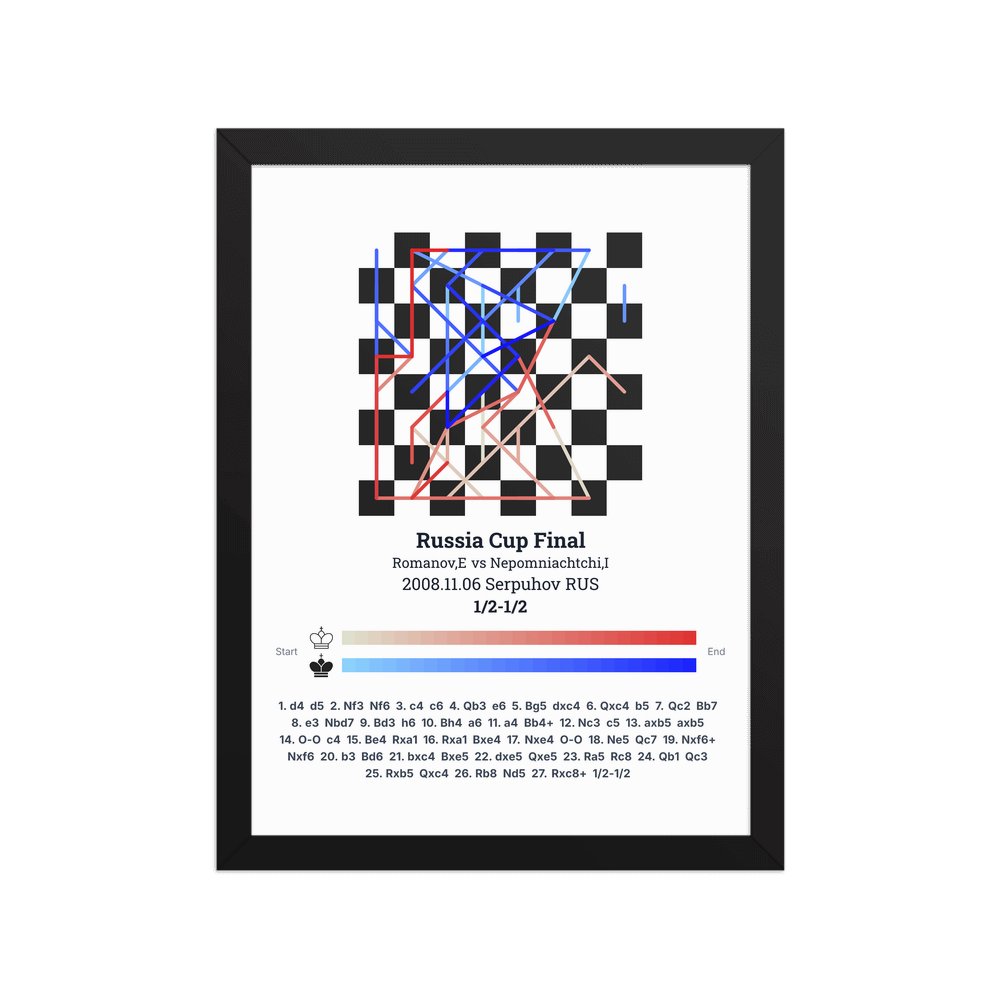 Museum-quality poster on thick, durable matte paper. A sharp, clean look for any chess visualisation.