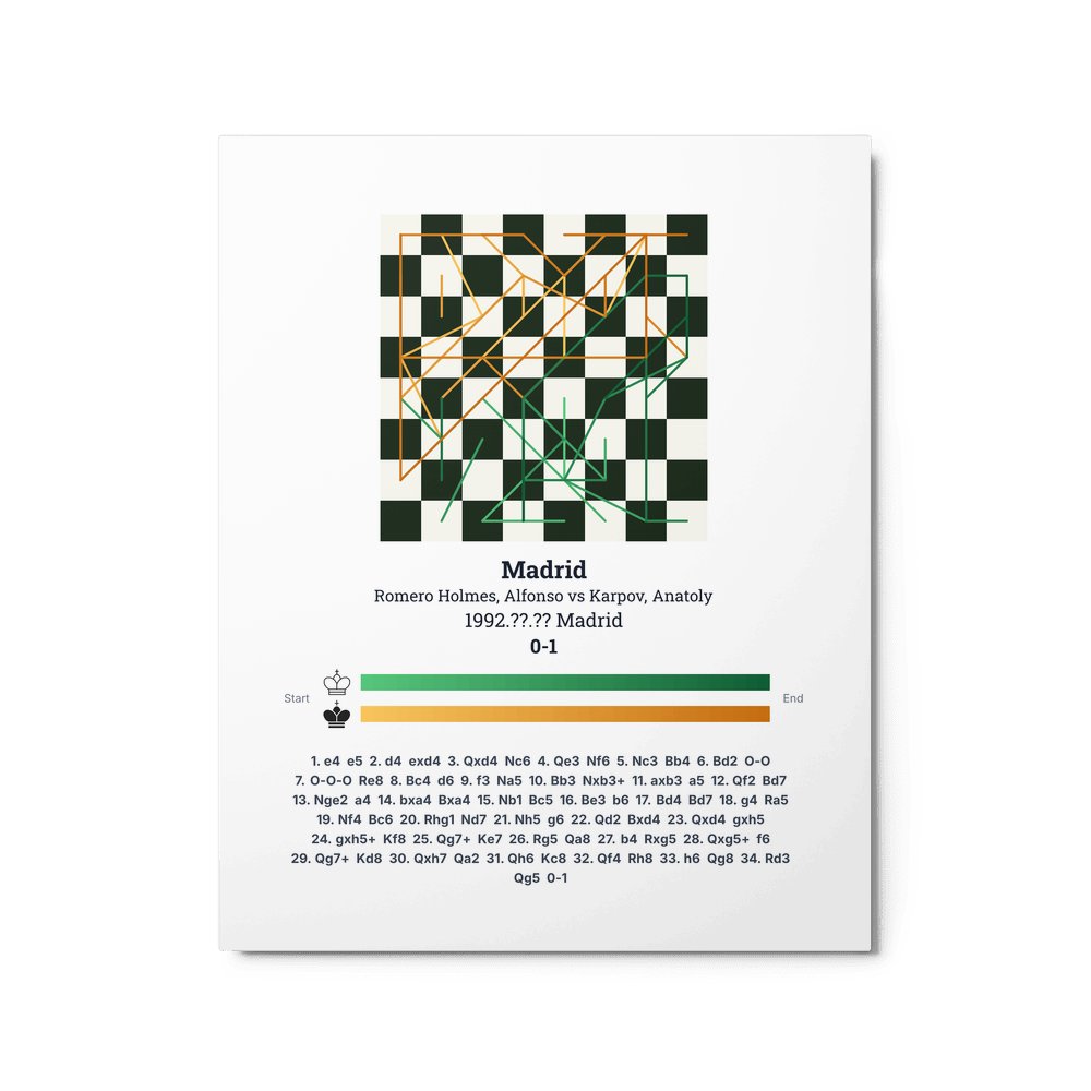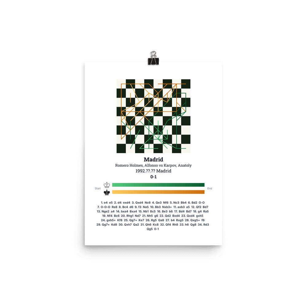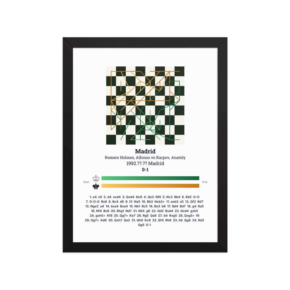 Museum-quality poster on thick, durable matte paper. A sharp, clean look for any chess visualisation.