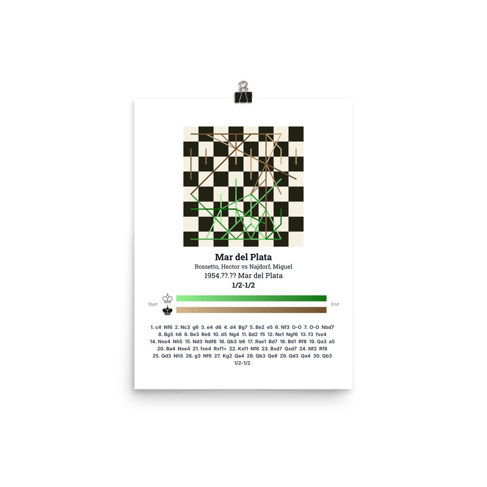 Museum-quality poster on thick, durable matte paper. A sharp, clean look for any chess visualisation.