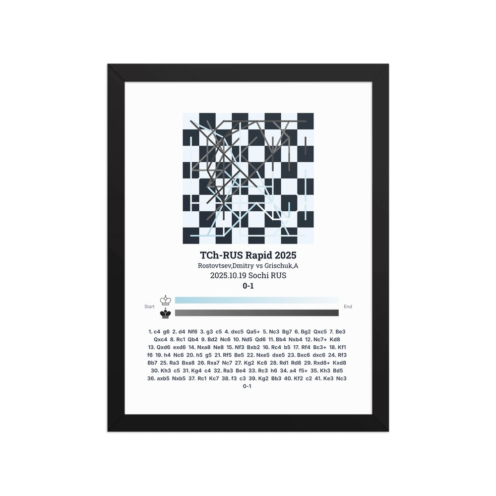 Museum-quality poster on thick, durable matte paper. A sharp, clean look for any chess visualisation.