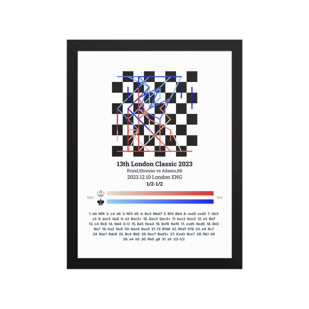 Museum-quality poster on thick, durable matte paper. A sharp, clean look for any chess visualisation.