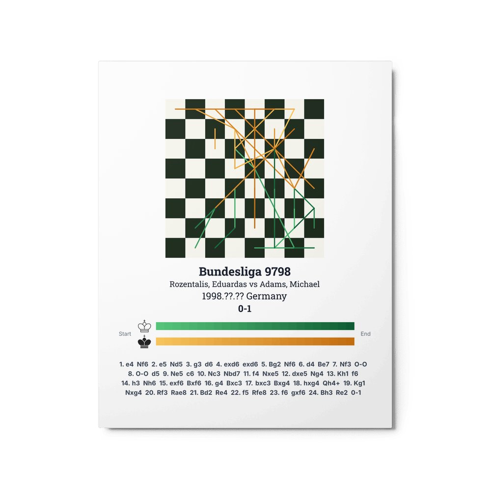 Museum-quality poster on thick, durable matte paper. A sharp, clean look for any chess visualisation.