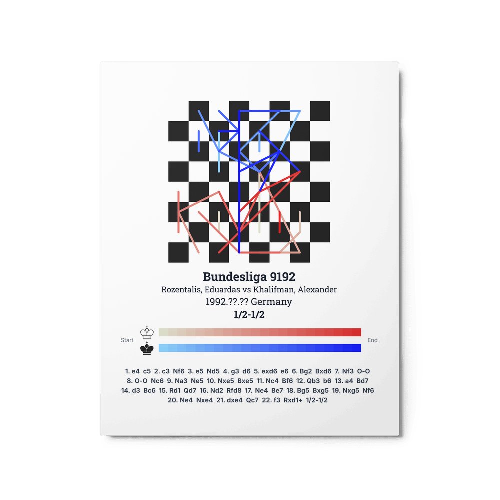 Museum-quality poster on thick, durable matte paper. A sharp, clean look for any chess visualisation.
