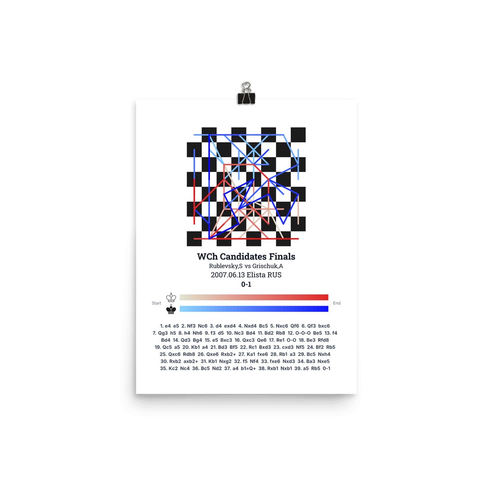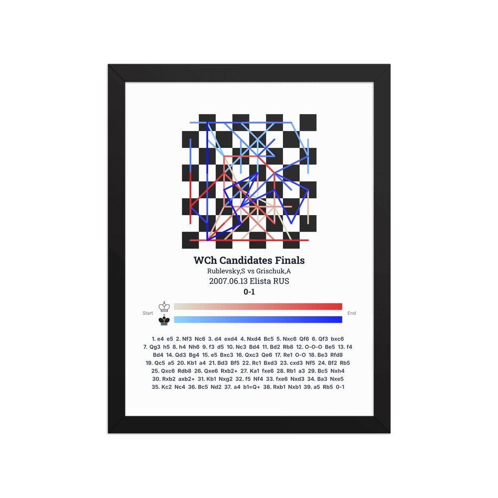 Museum-quality poster on thick, durable matte paper. A sharp, clean look for any chess visualisation.