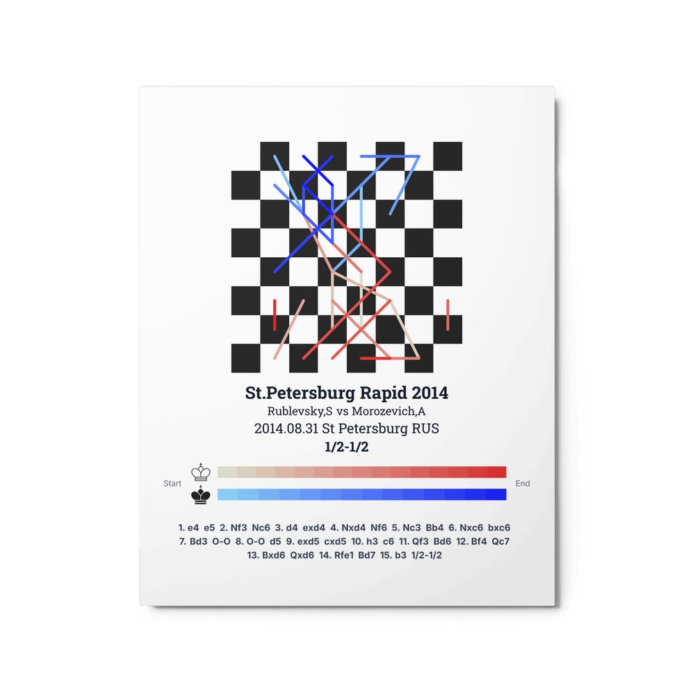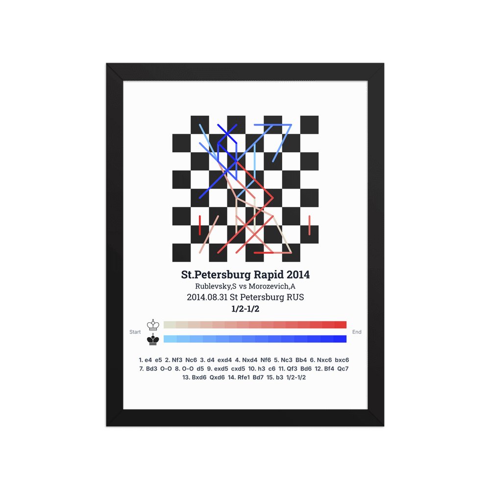 Museum-quality poster on thick, durable matte paper. A sharp, clean look for any chess visualisation.