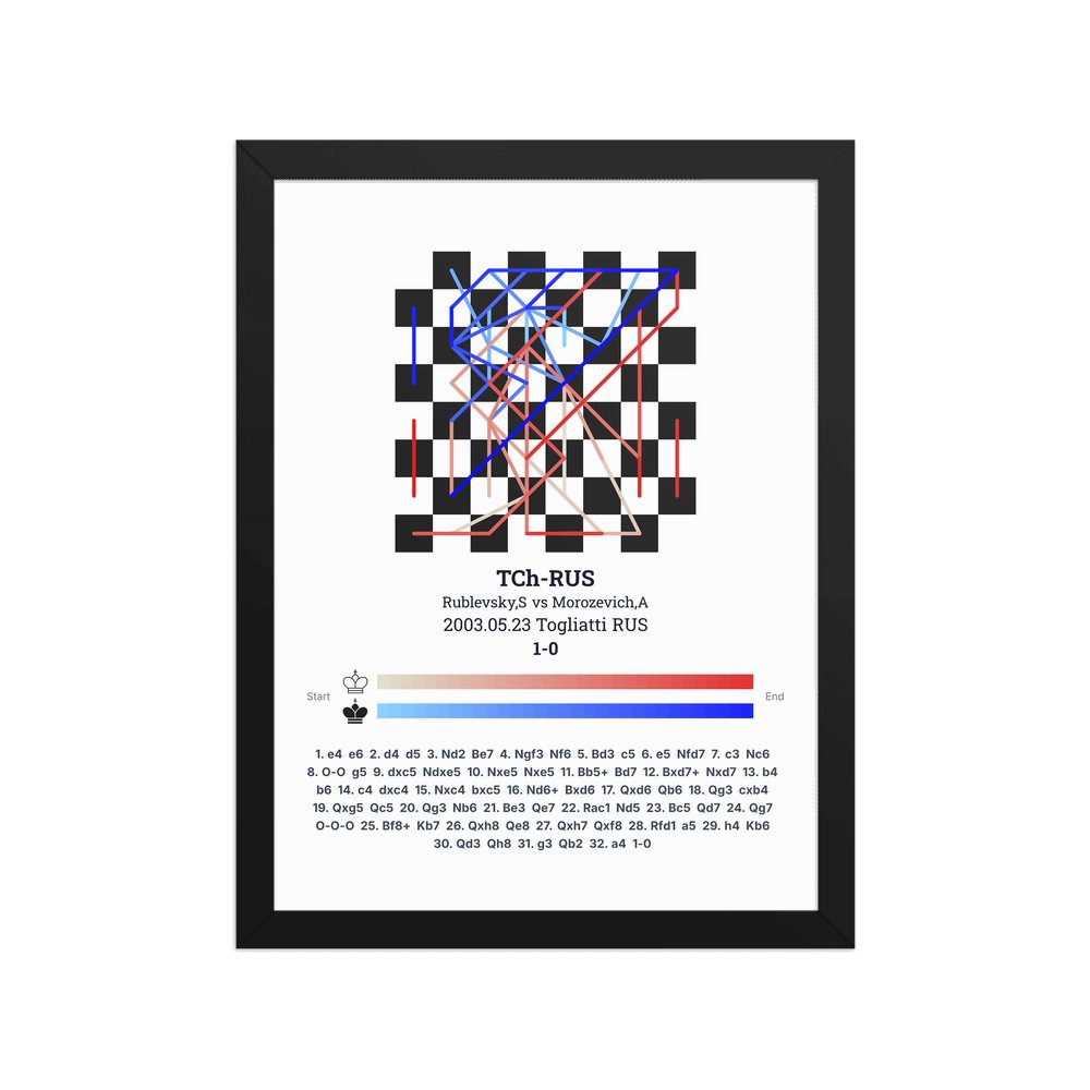 Museum-quality poster on thick, durable matte paper. A sharp, clean look for any chess visualisation.