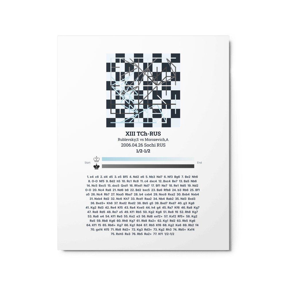 Museum-quality poster on thick, durable matte paper. A sharp, clean look for any chess visualisation.
