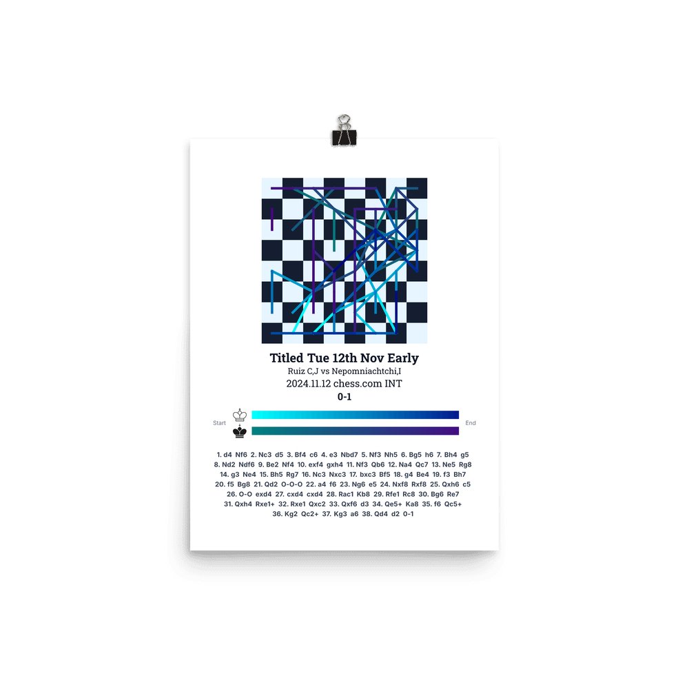 Museum-quality poster on thick, durable matte paper. A sharp, clean look for any chess visualisation.