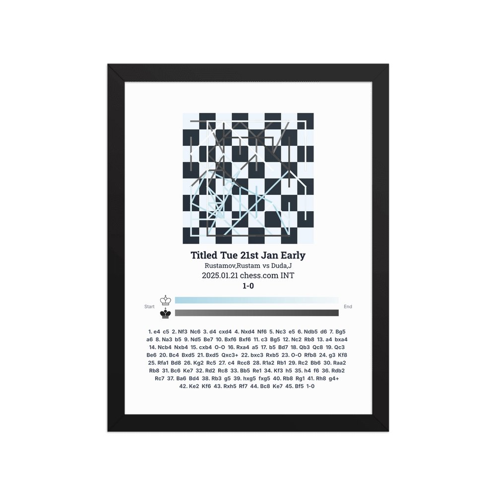 Museum-quality poster on thick, durable matte paper. A sharp, clean look for any chess visualisation.