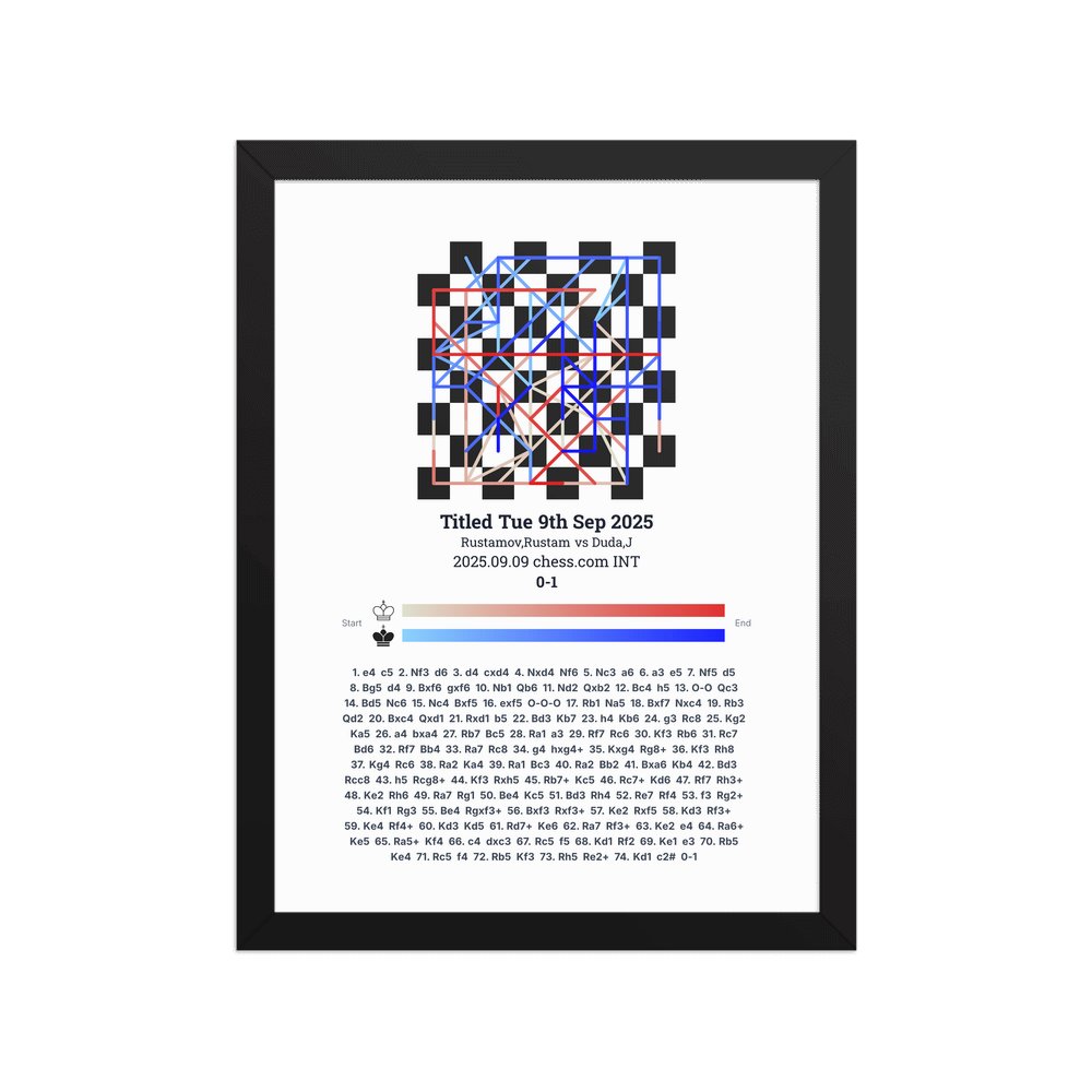 Museum-quality poster on thick, durable matte paper. A sharp, clean look for any chess visualisation.