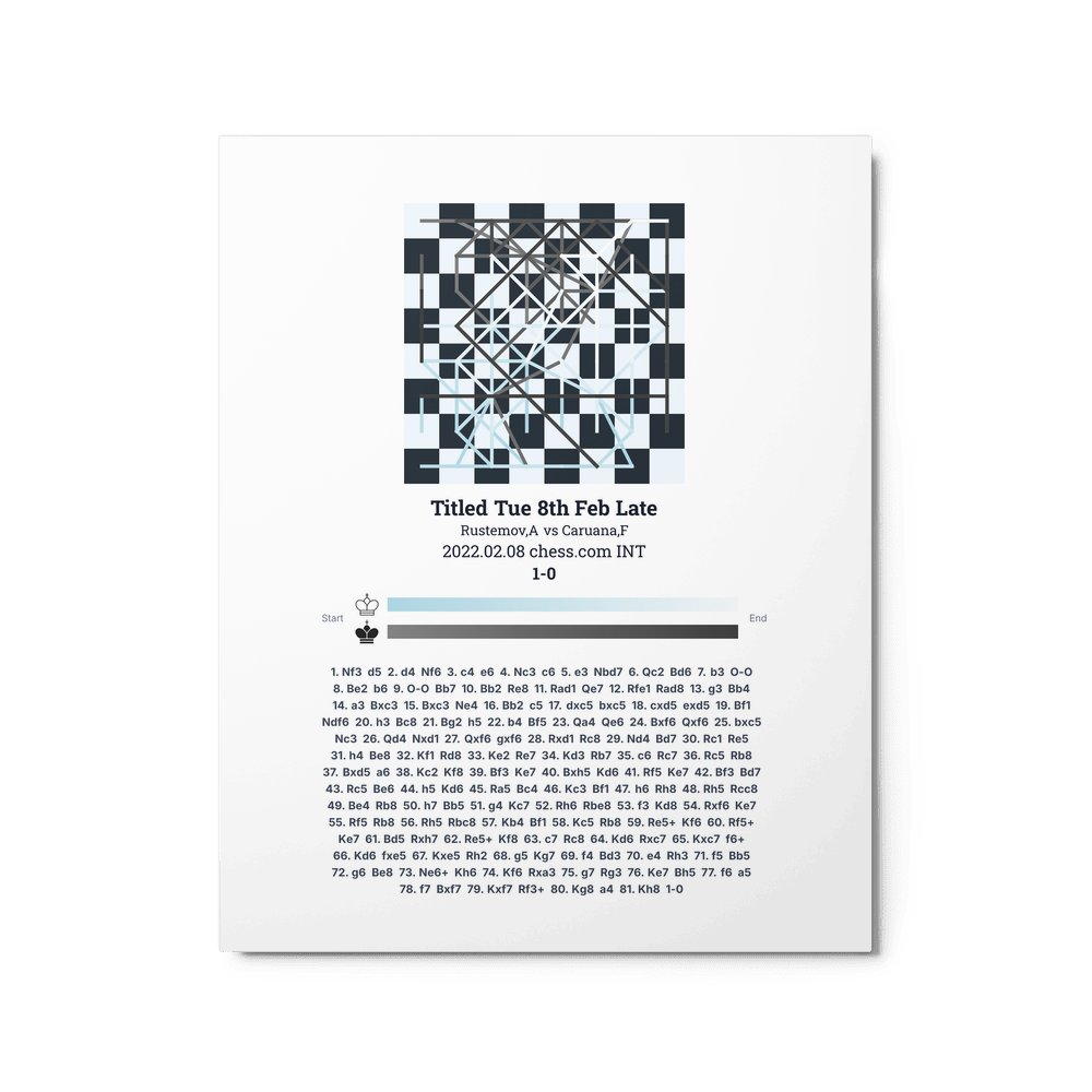 Museum-quality poster on thick, durable matte paper. A sharp, clean look for any chess visualisation.