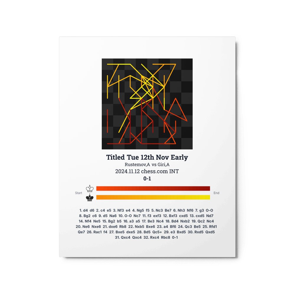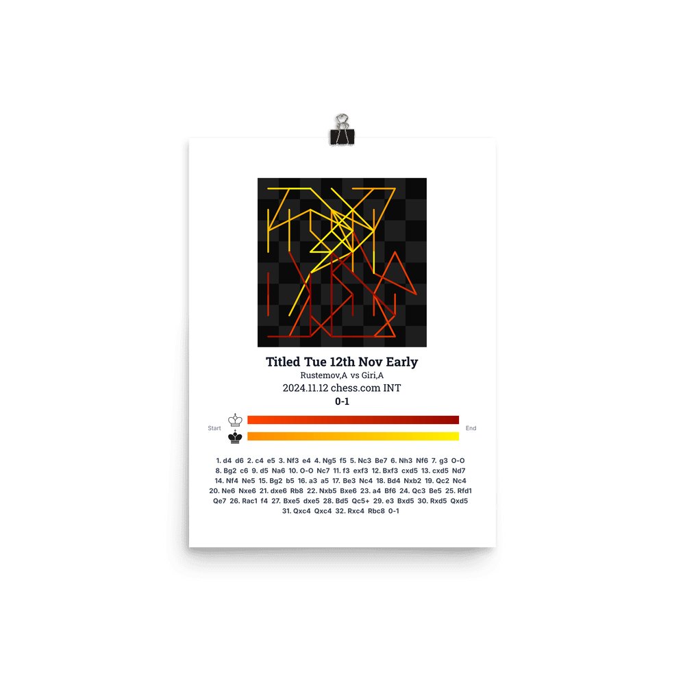 Museum-quality poster on thick, durable matte paper. A sharp, clean look for any chess visualisation.