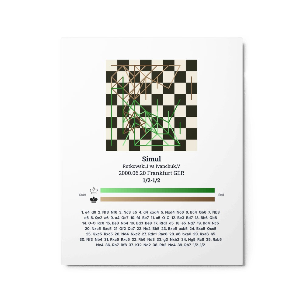 Museum-quality poster on thick, durable matte paper. A sharp, clean look for any chess visualisation.