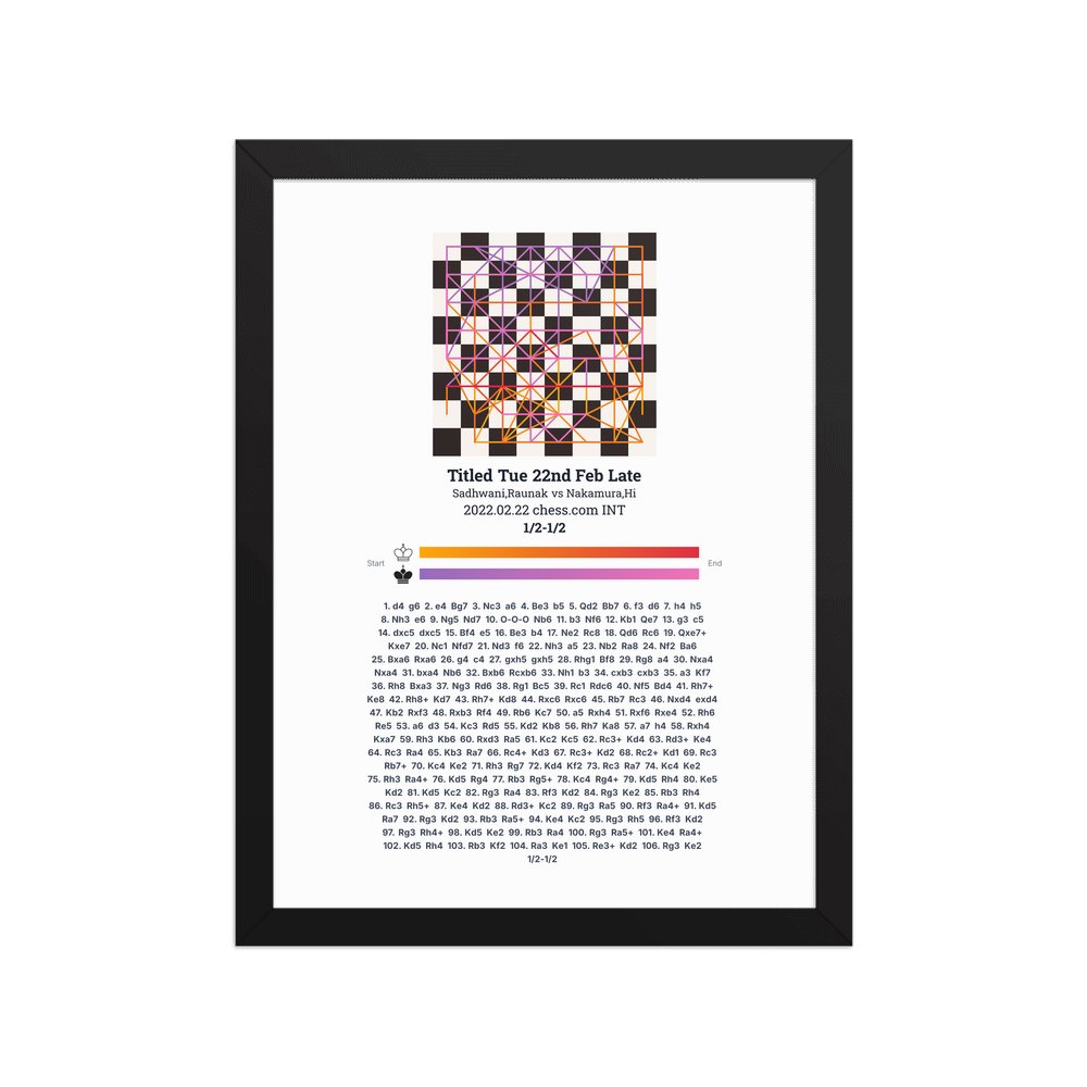 Museum-quality poster on thick, durable matte paper. A sharp, clean look for any chess visualisation.