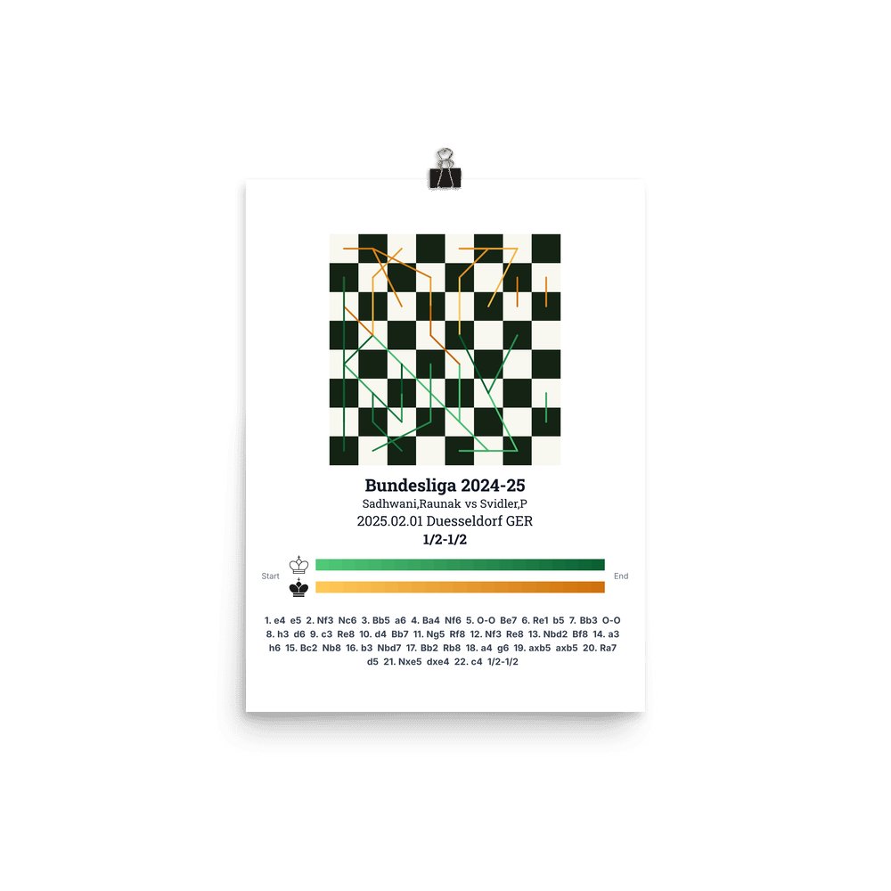 Museum-quality poster on thick, durable matte paper. A sharp, clean look for any chess visualisation.
