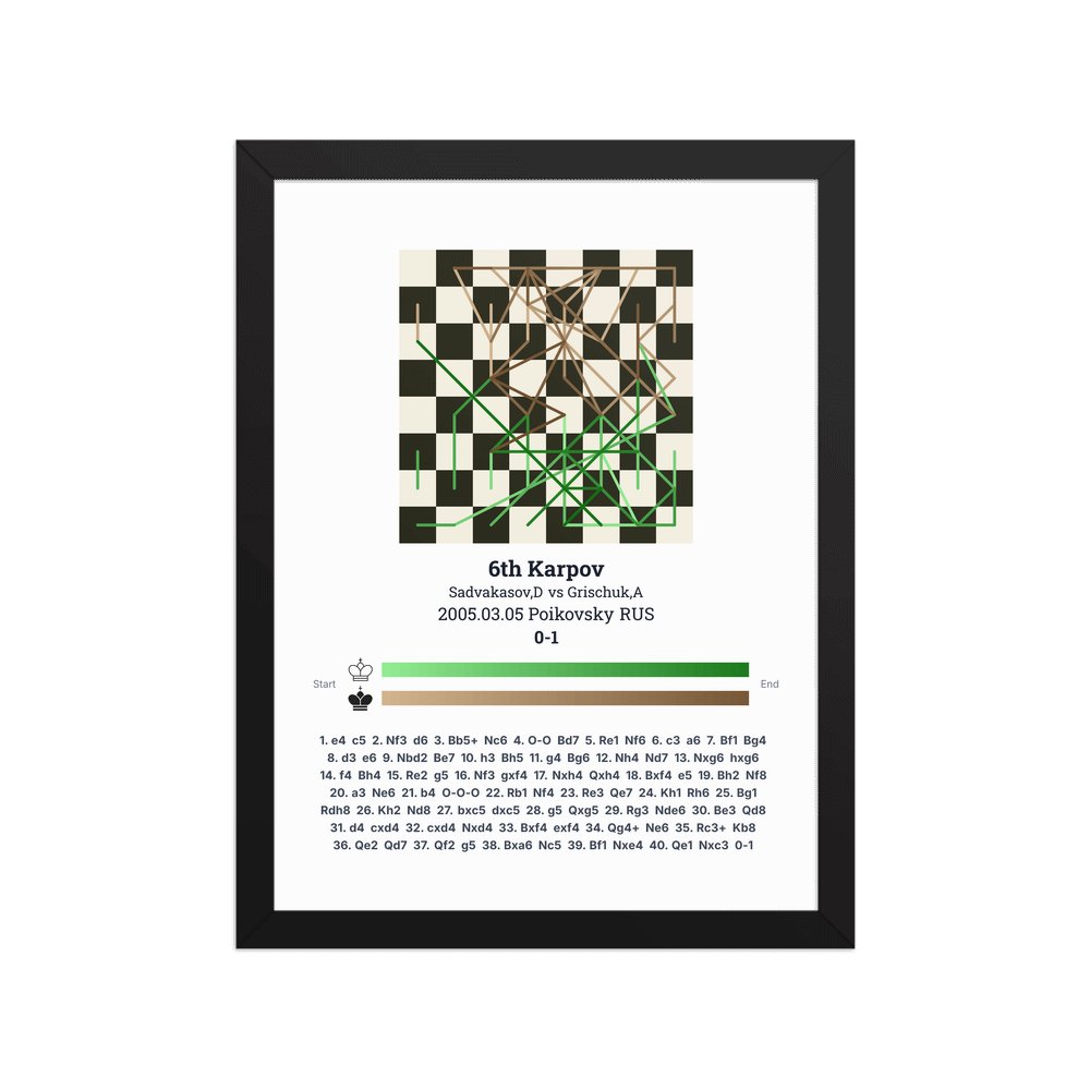 Museum-quality poster on thick, durable matte paper. A sharp, clean look for any chess visualisation.