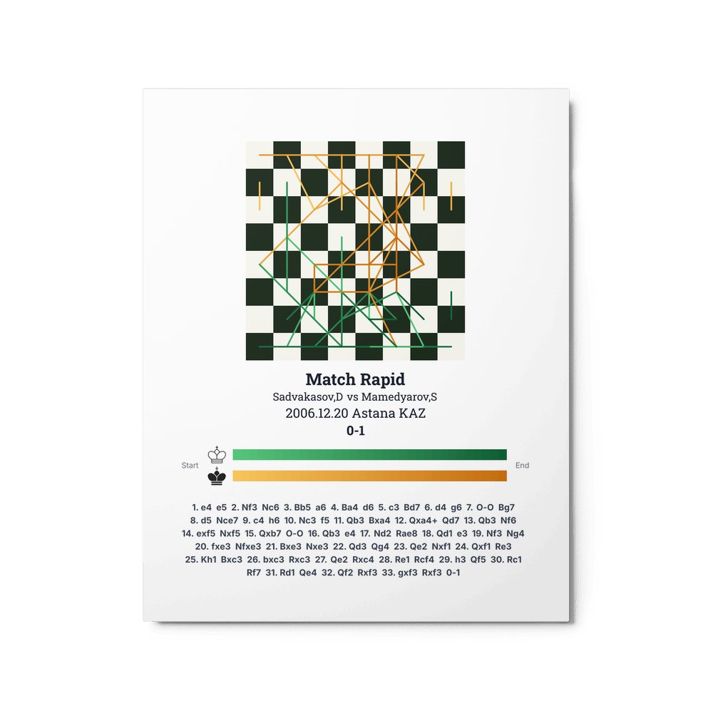 Museum-quality poster on thick, durable matte paper. A sharp, clean look for any chess visualisation.