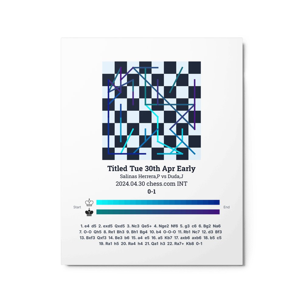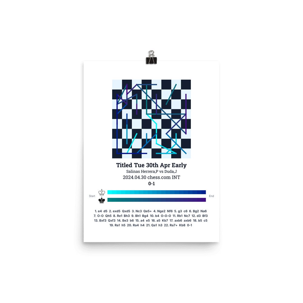 Museum-quality poster on thick, durable matte paper. A sharp, clean look for any chess visualisation.