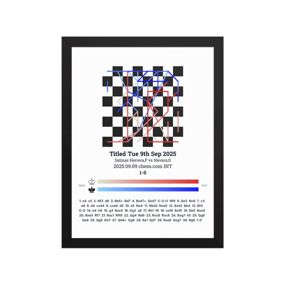 Museum-quality poster on thick, durable matte paper. A sharp, clean look for any chess visualisation.