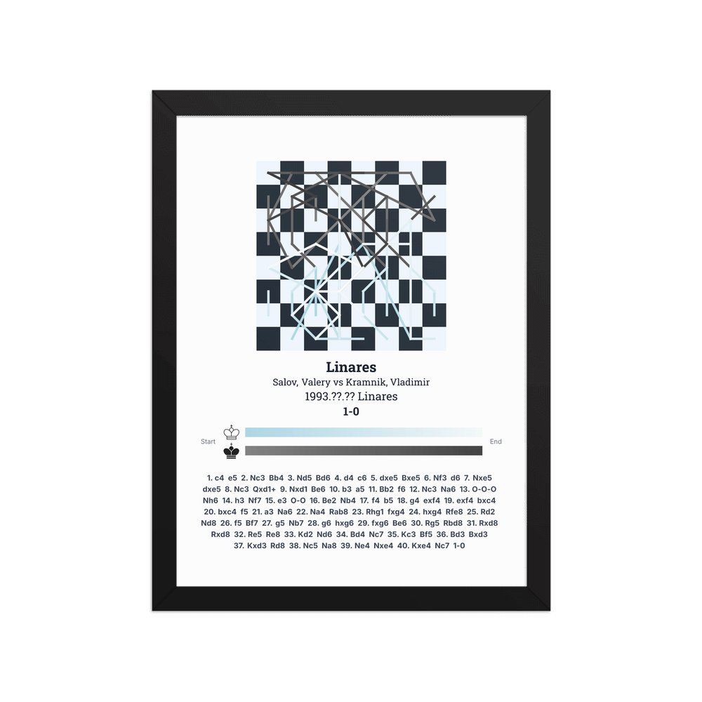 Museum-quality poster on thick, durable matte paper. A sharp, clean look for any chess visualisation.