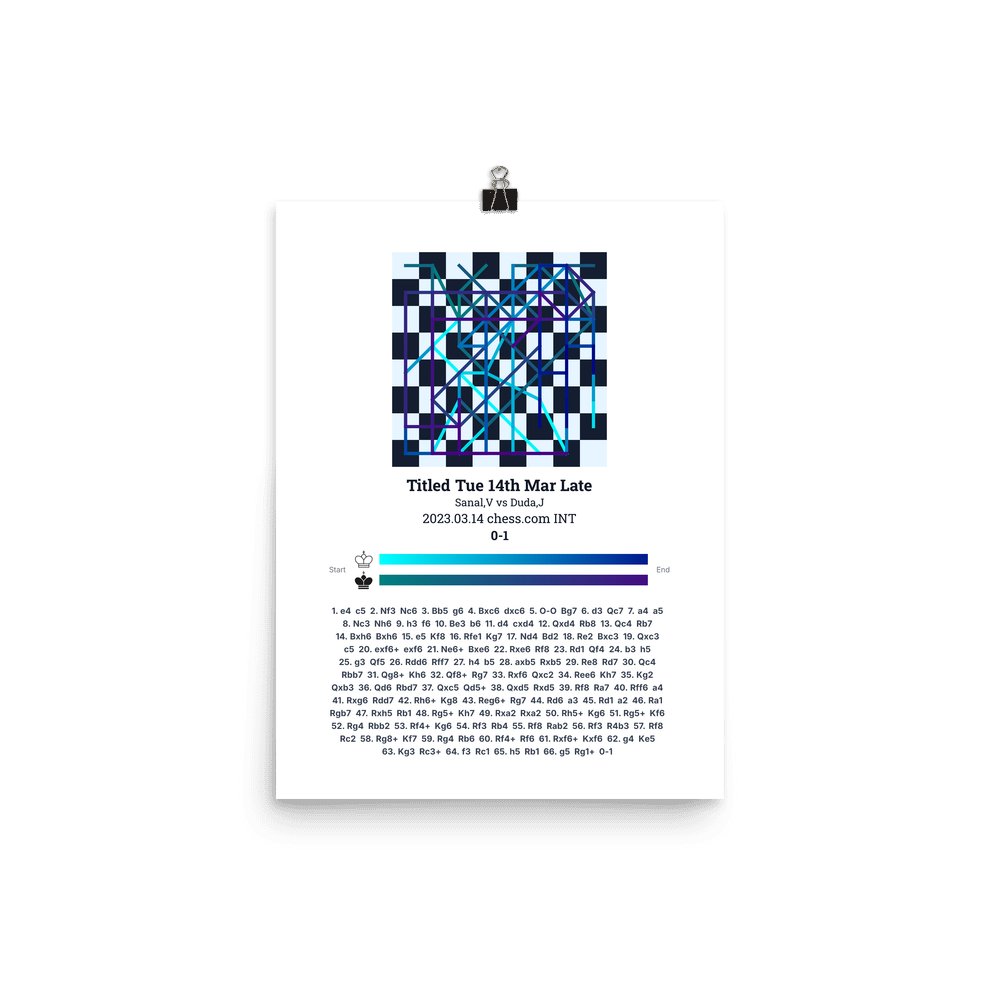 Museum-quality poster on thick, durable matte paper. A sharp, clean look for any chess visualisation.