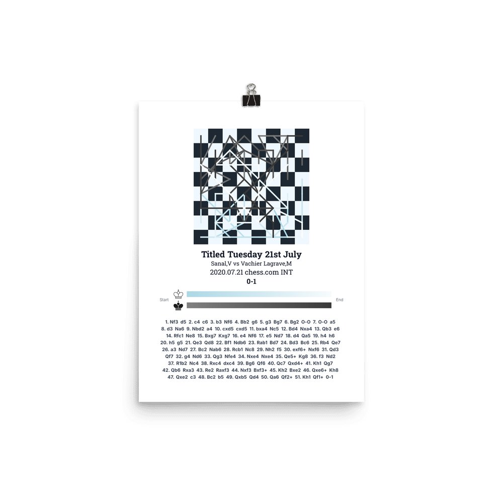 Museum-quality poster on thick, durable matte paper. A sharp, clean look for any chess visualisation.