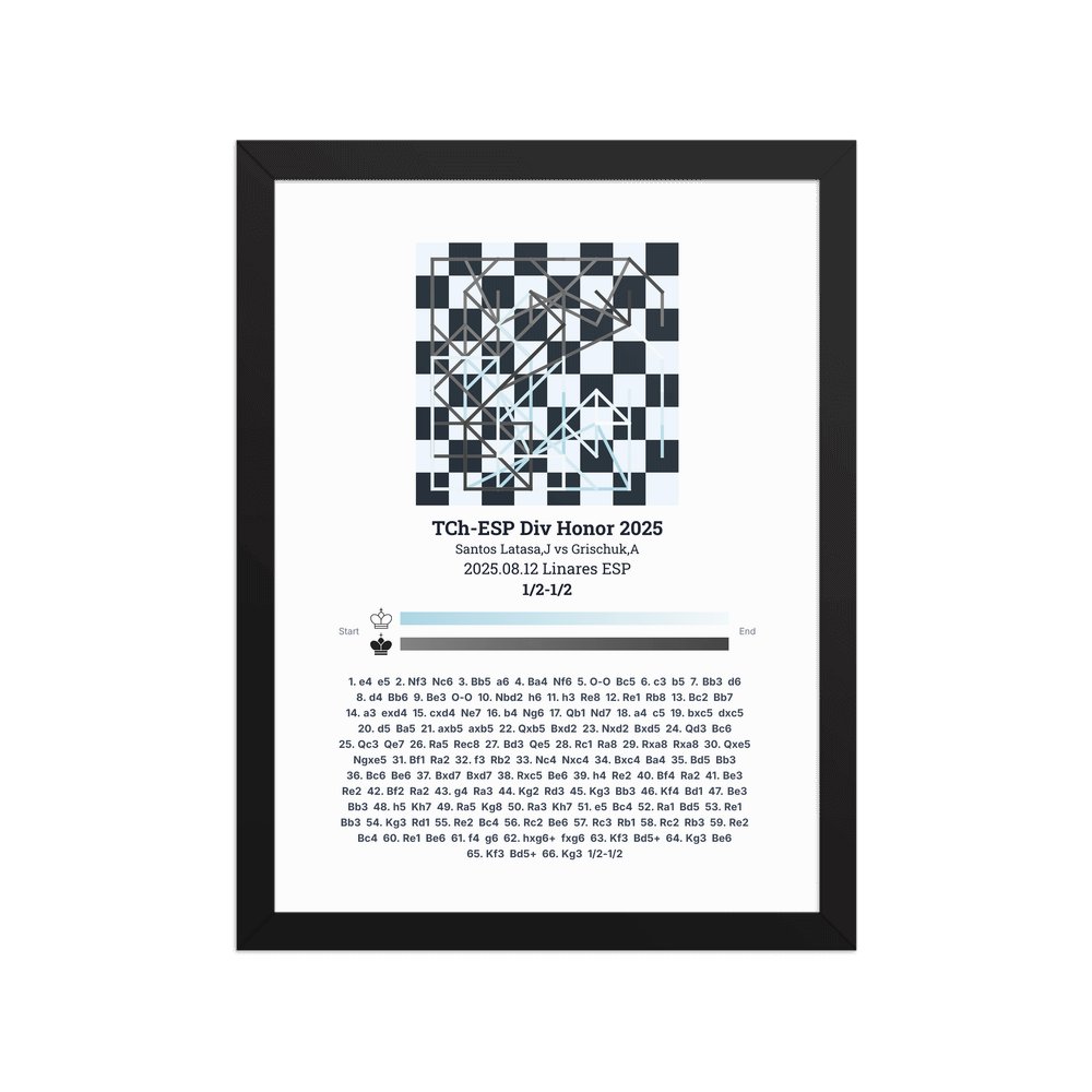 Museum-quality poster on thick, durable matte paper. A sharp, clean look for any chess visualisation.