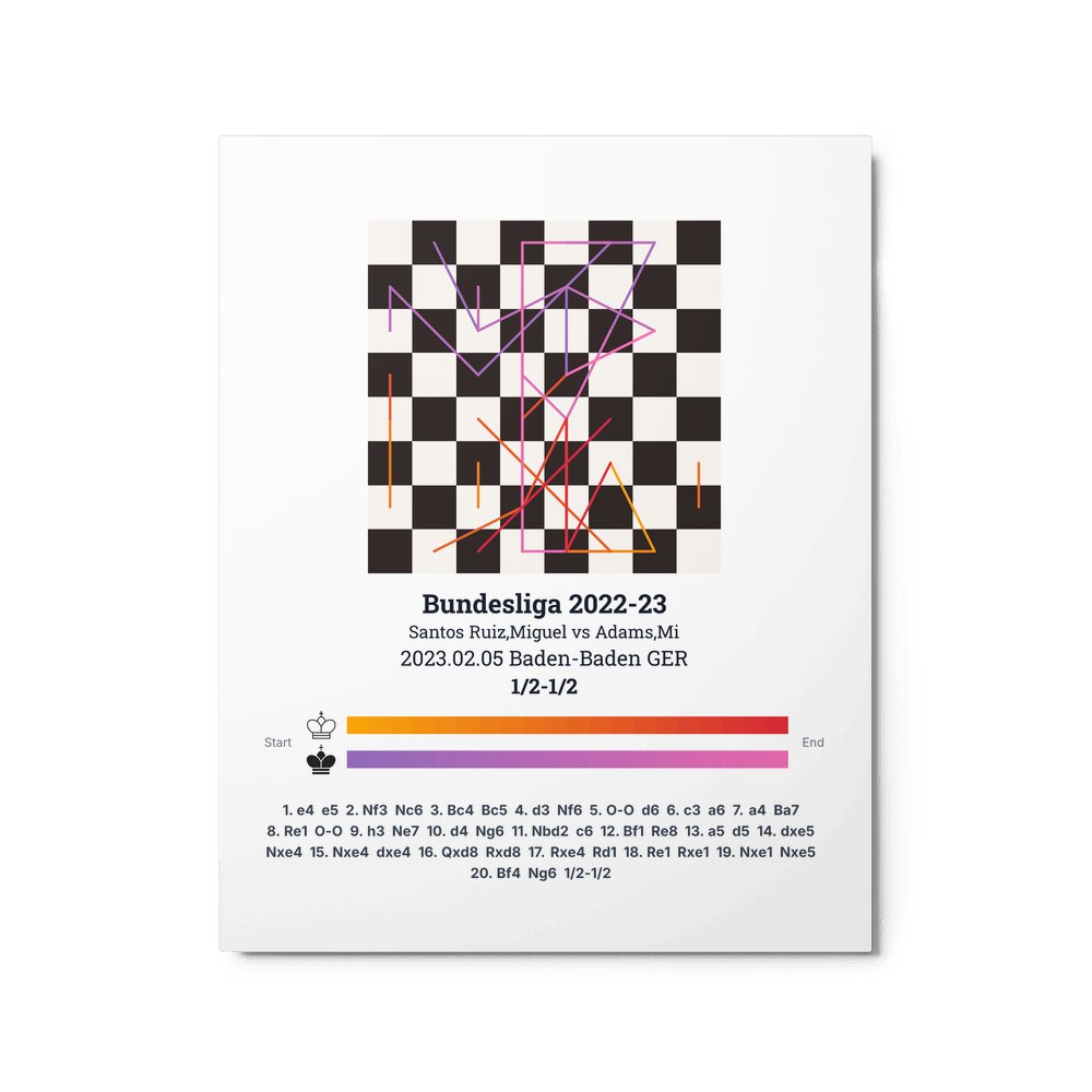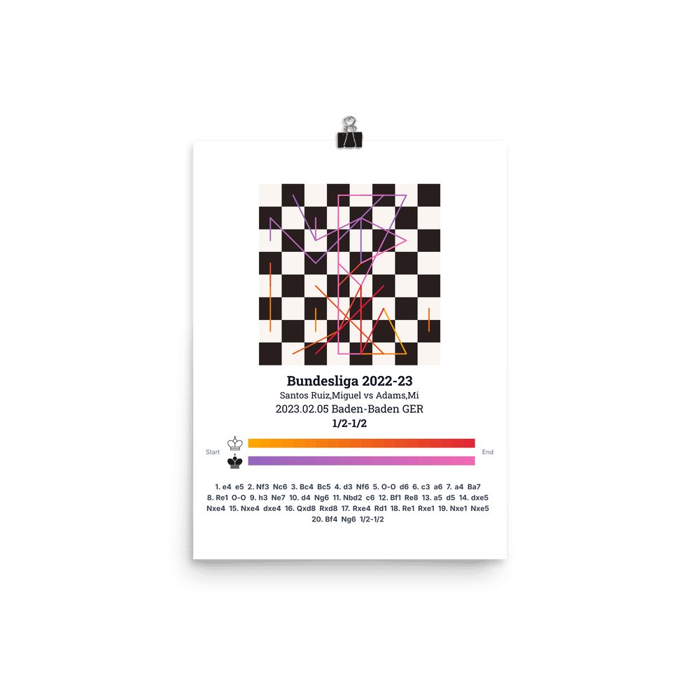 Museum-quality poster on thick, durable matte paper. A sharp, clean look for any chess visualisation.