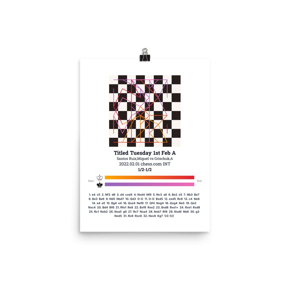 Museum-quality poster on thick, durable matte paper. A sharp, clean look for any chess visualisation.