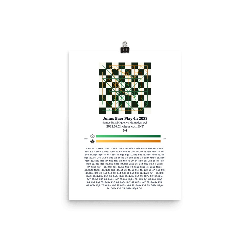 Museum-quality poster on thick, durable matte paper. A sharp, clean look for any chess visualisation.