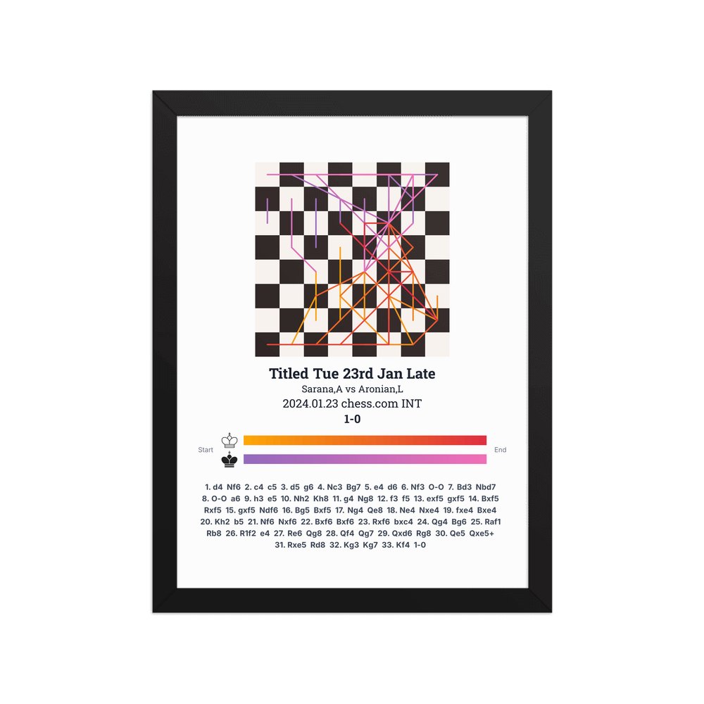 Museum-quality poster on thick, durable matte paper. A sharp, clean look for any chess visualisation.