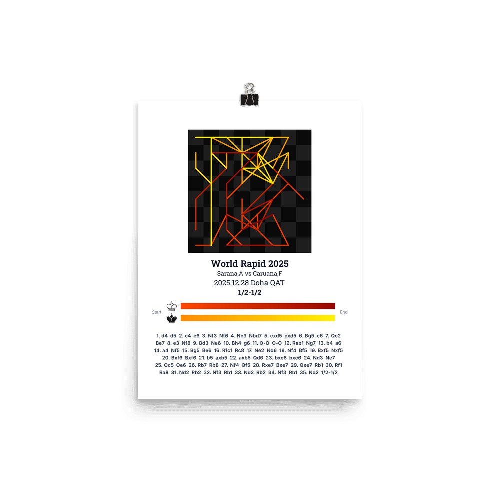 Museum-quality poster on thick, durable matte paper. A sharp, clean look for any chess visualisation.