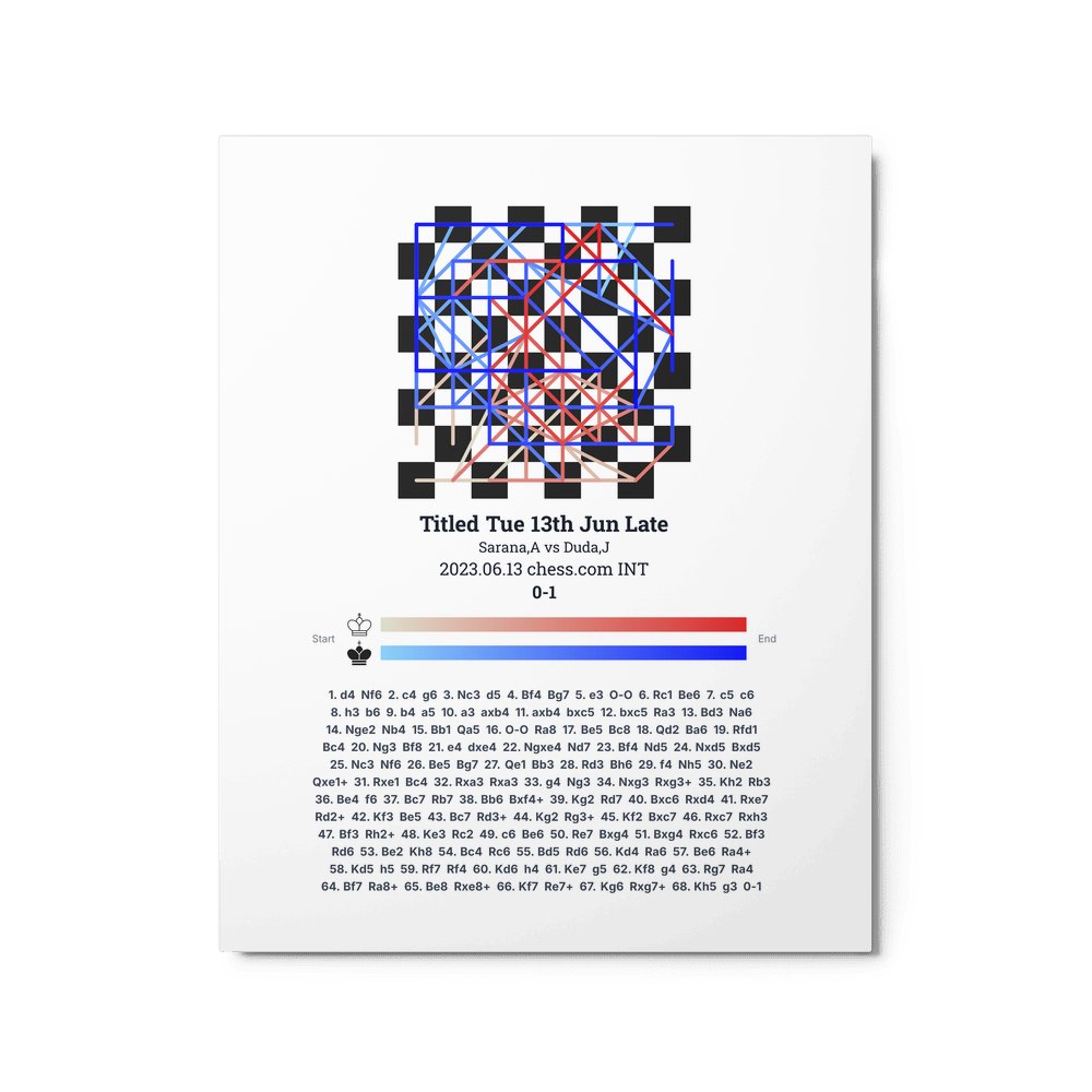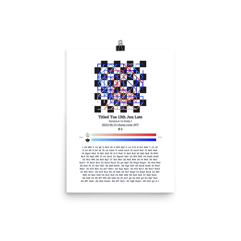 Museum-quality poster on thick, durable matte paper. A sharp, clean look for any chess visualisation.