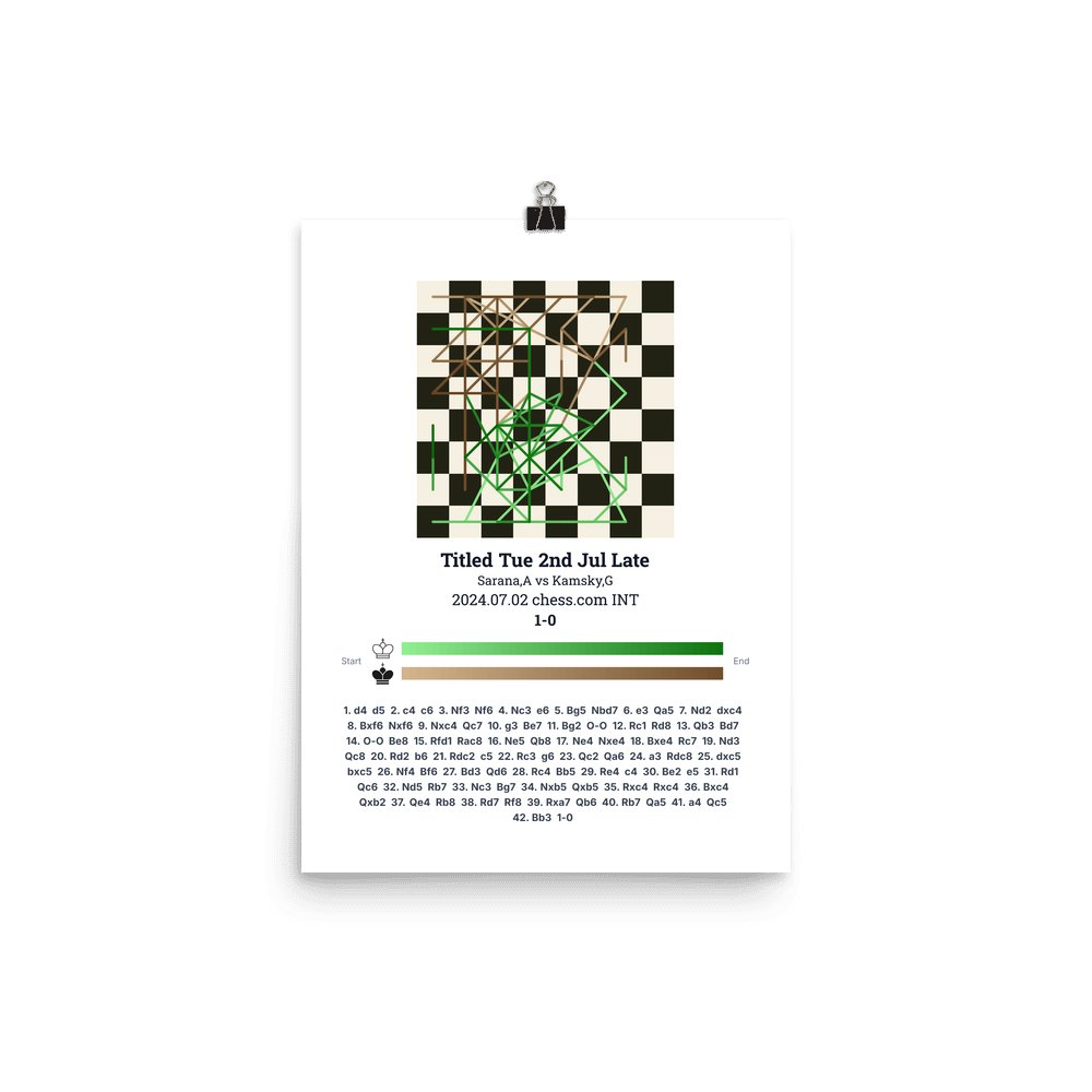 Museum-quality poster on thick, durable matte paper. A sharp, clean look for any chess visualisation.