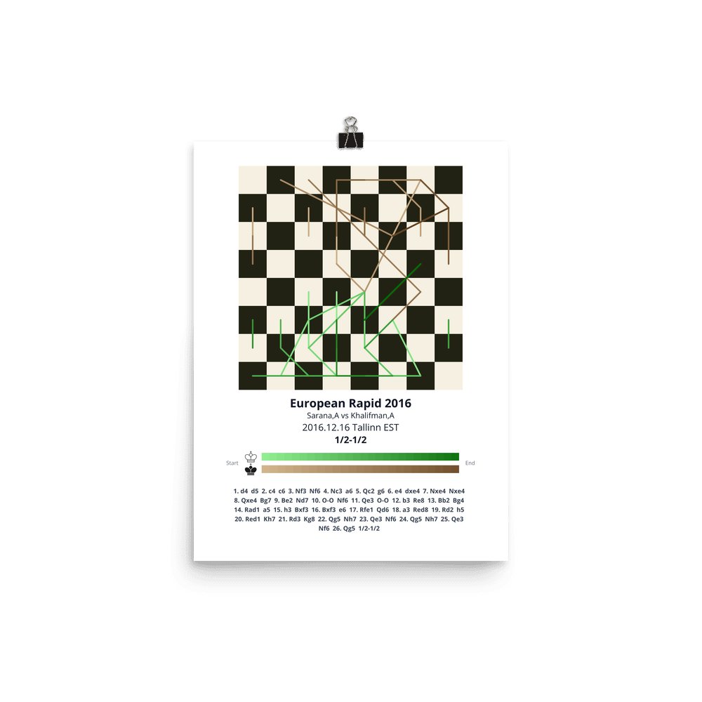 Museum-quality poster on thick, durable matte paper. A sharp, clean look for any chess visualisation.