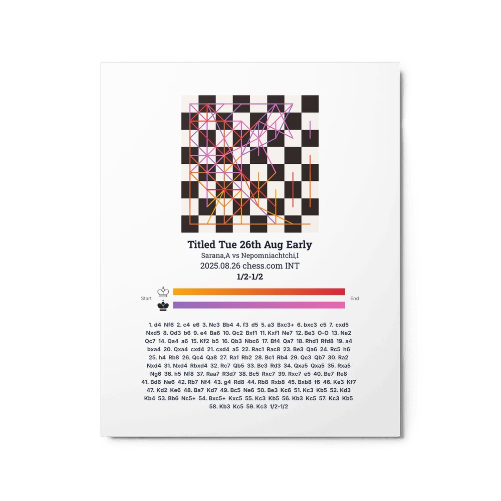 Museum-quality poster on thick, durable matte paper. A sharp, clean look for any chess visualisation.