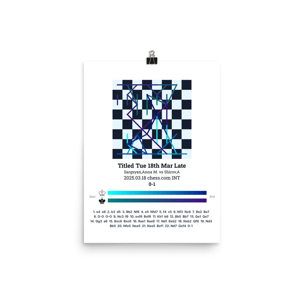 Museum-quality poster on thick, durable matte paper. A sharp, clean look for any chess visualisation.