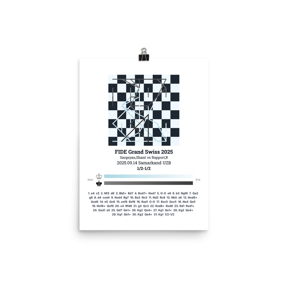 Museum-quality poster on thick, durable matte paper. A sharp, clean look for any chess visualisation.
