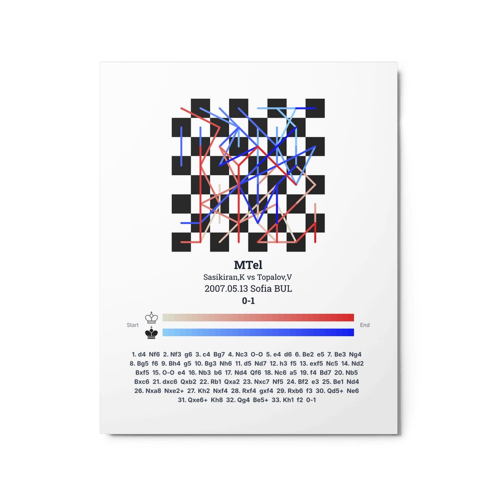 Museum-quality poster on thick, durable matte paper. A sharp, clean look for any chess visualisation.