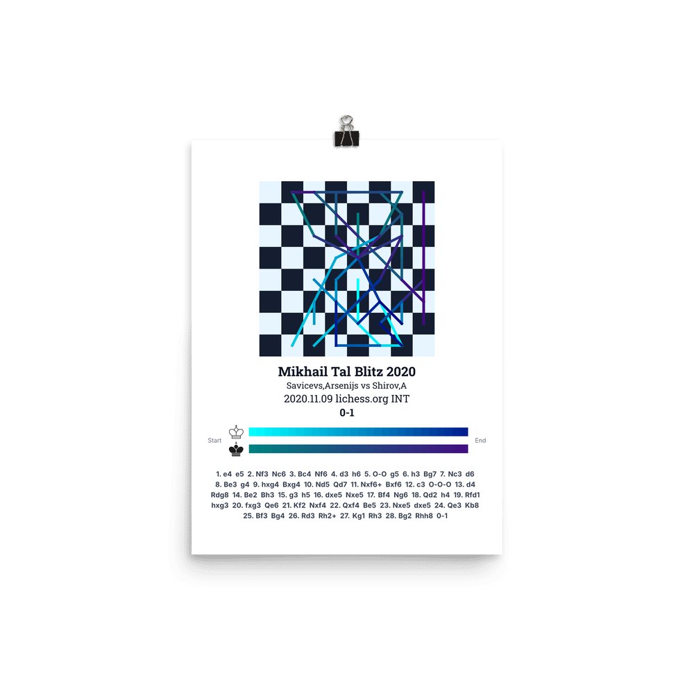 Museum-quality poster on thick, durable matte paper. A sharp, clean look for any chess visualisation.