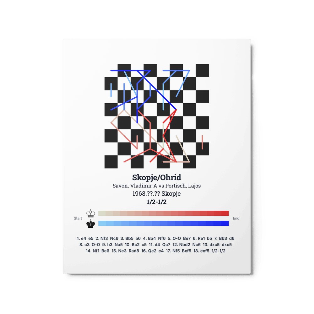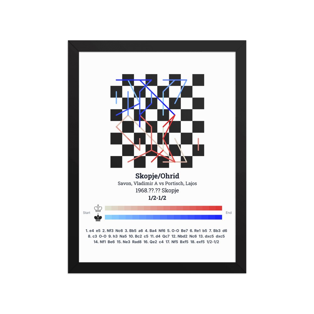 Museum-quality poster on thick, durable matte paper. A sharp, clean look for any chess visualisation.