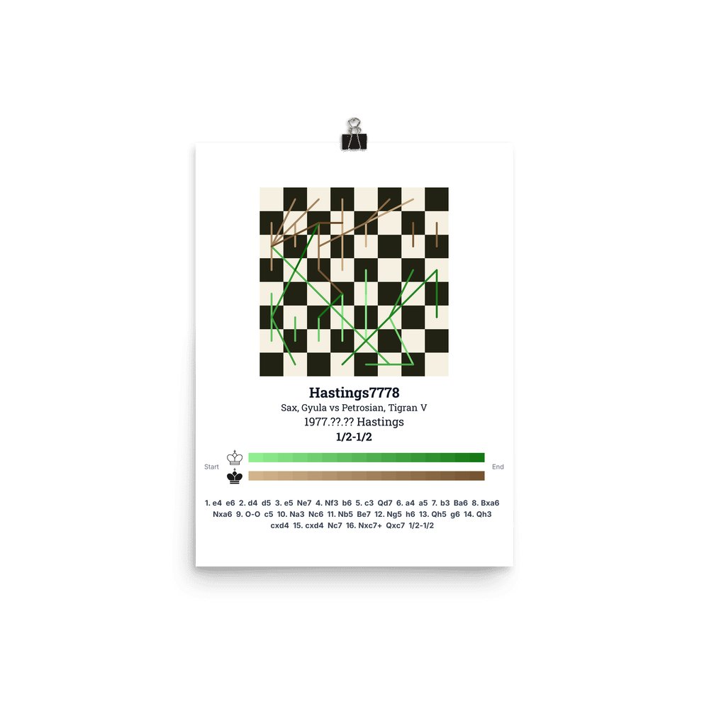 Museum-quality poster on thick, durable matte paper. A sharp, clean look for any chess visualisation.