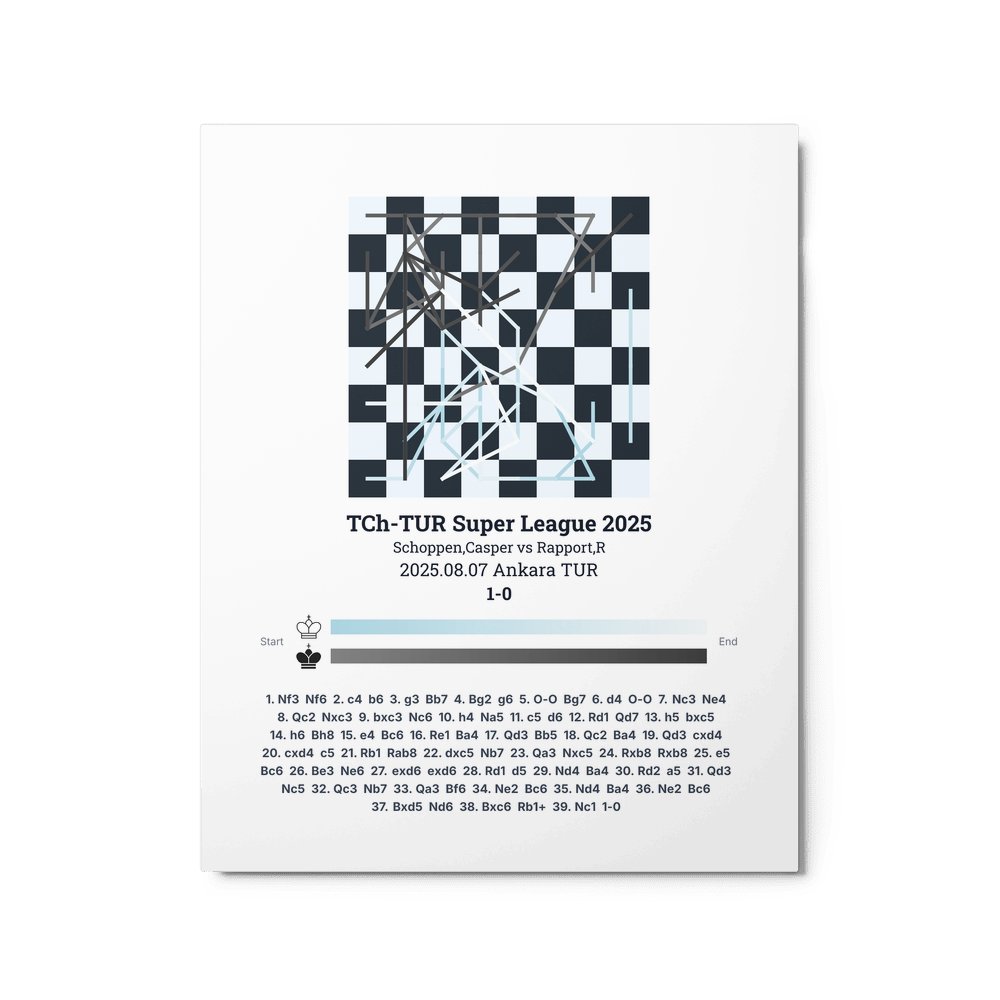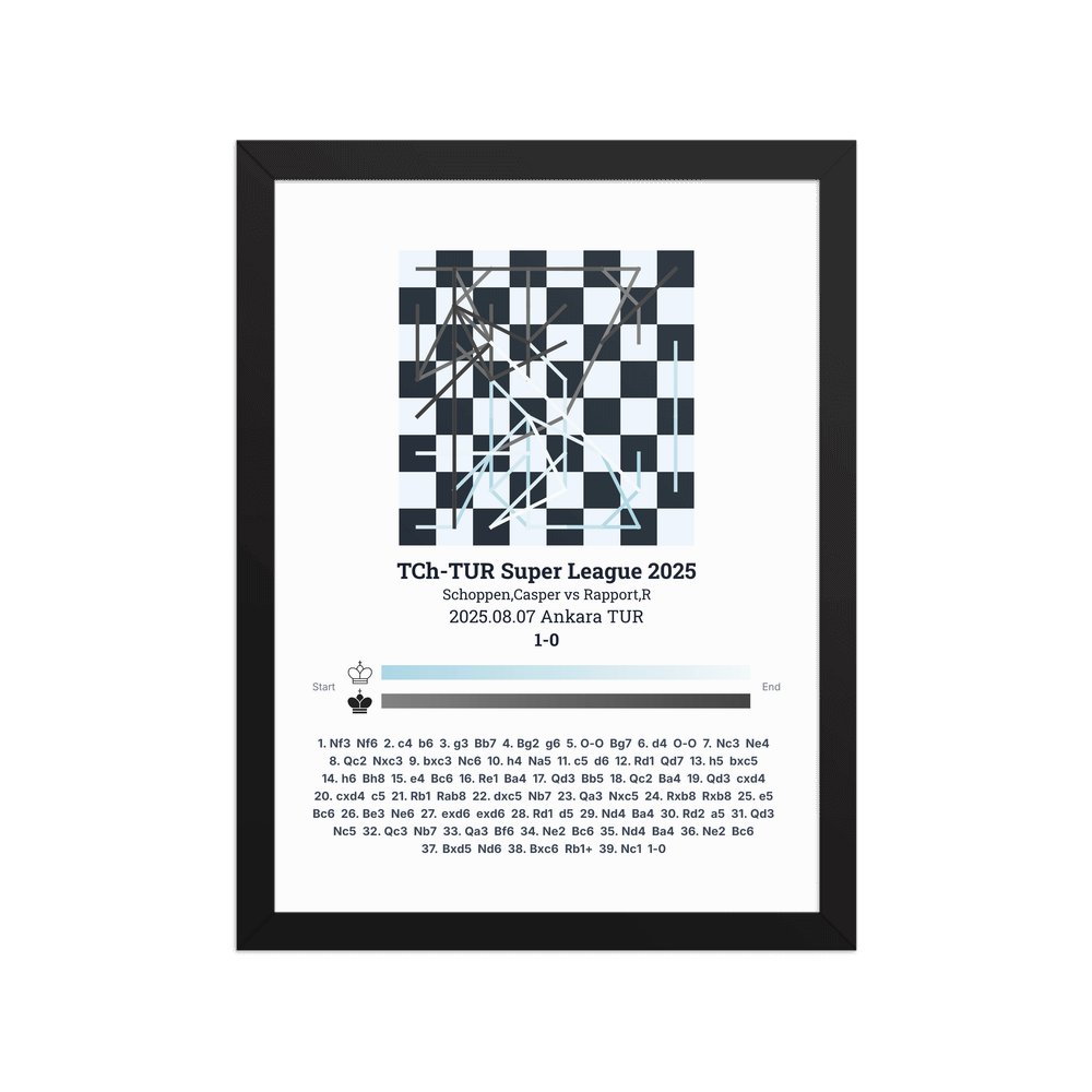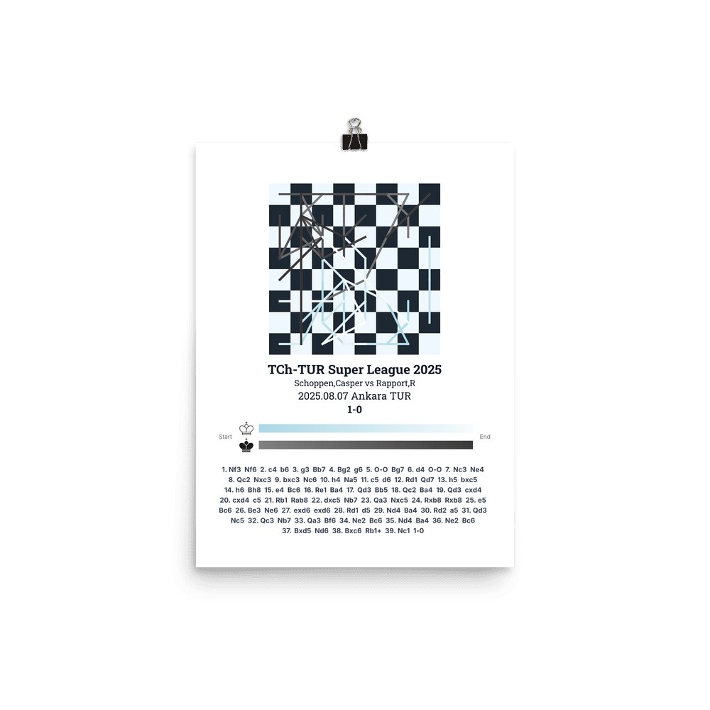 Museum-quality poster on thick, durable matte paper. A sharp, clean look for any chess visualisation.