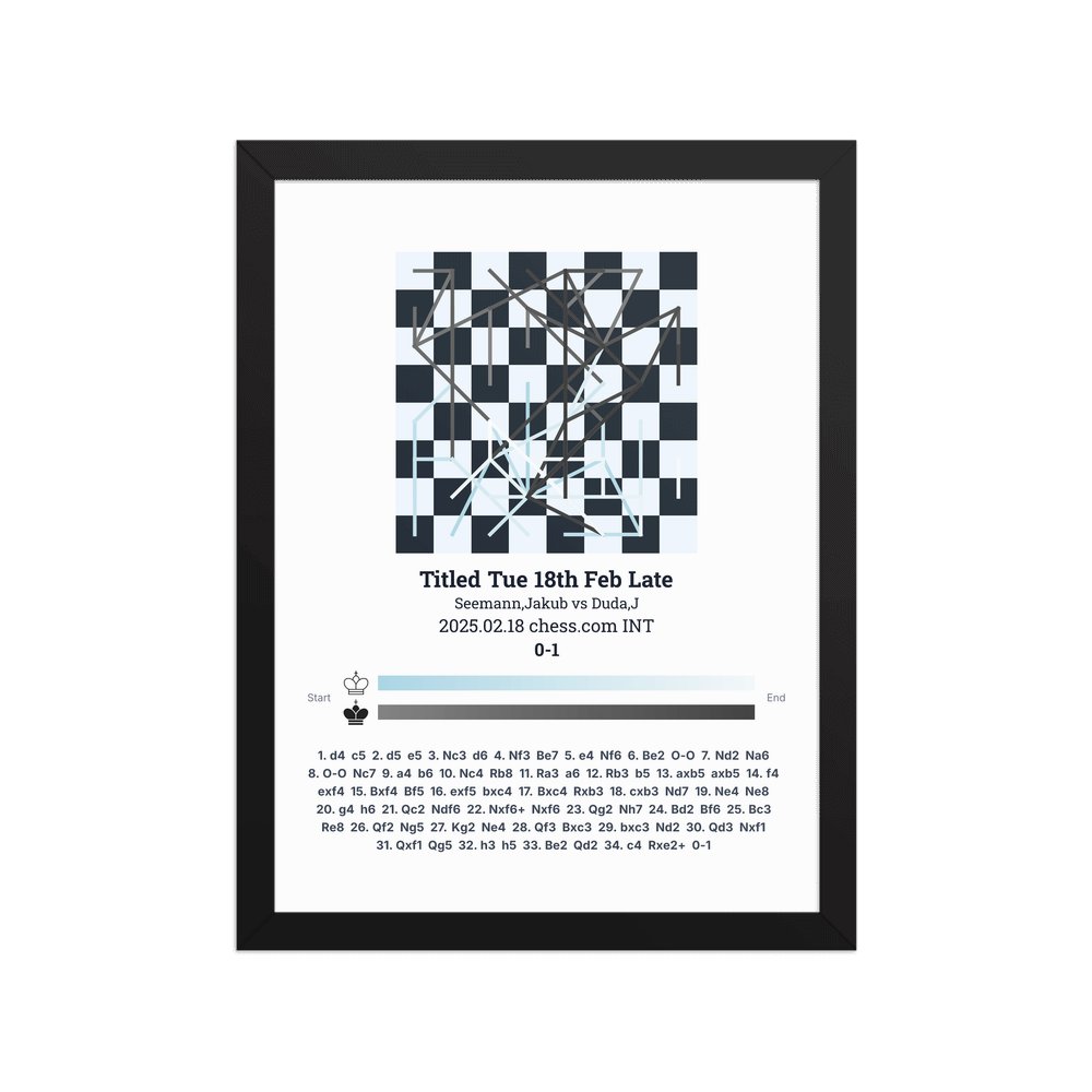 Museum-quality poster on thick, durable matte paper. A sharp, clean look for any chess visualisation.