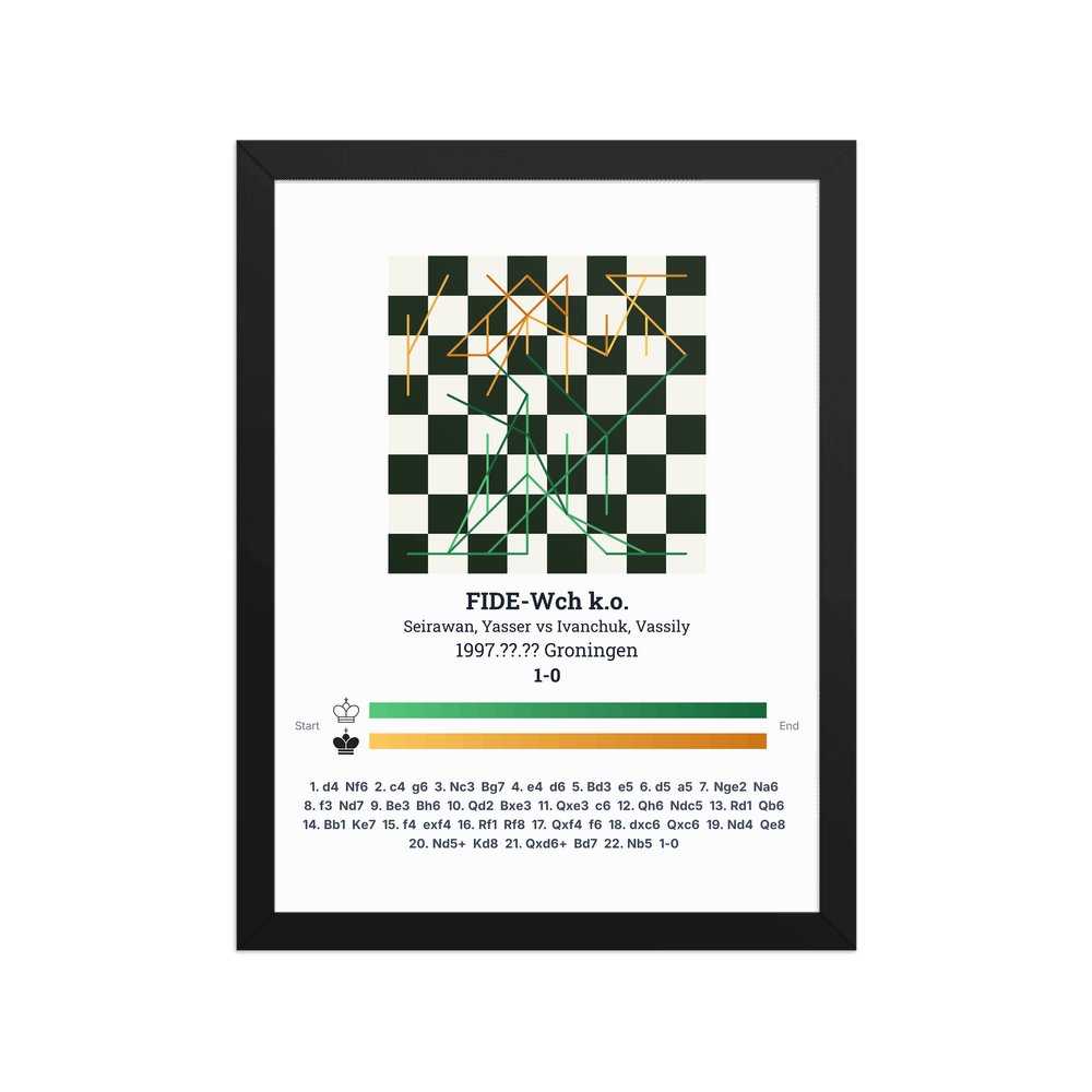 Museum-quality poster on thick, durable matte paper. A sharp, clean look for any chess visualisation.